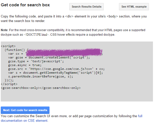 #5 Click on the get code for search results